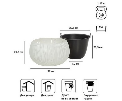 Кашпо для цветов Sandy Bowl DSK370-S449 9 л (белый)