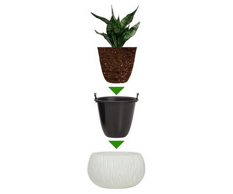 Кашпо из двух предметов: внутренней емкости для растения и декоративной емкости.