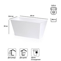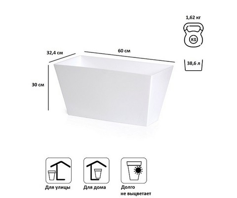 Кашпо для цветов Tubus Case DTUC600-S449 белый 38.6л - вместительное прямоугольное кашпо для дома, офиса, патио, веранды.