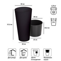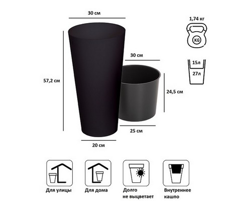Кашпо для цветов Tubus Slim DTUS300-S433 15 и 27 л (антрацит)