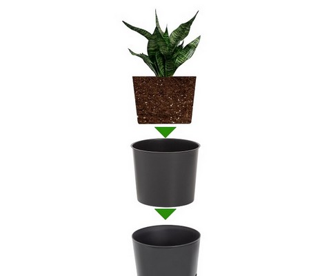 Емкость для растения имеет меньший объем и вставляется в декоративную емкость.