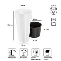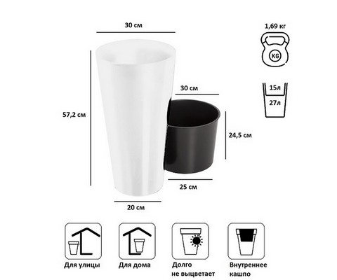 Кашпо для цветов Tubus Slim Shine DTUS300S-S449 15 и 27 л (белый)