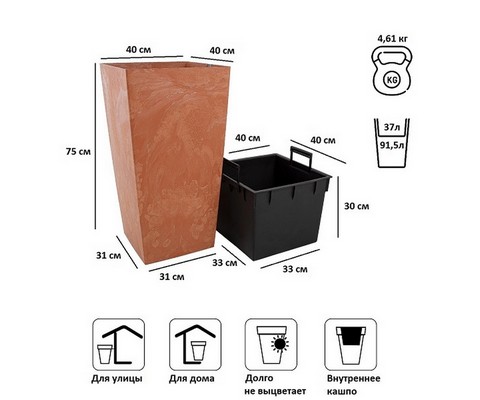 Кашпо для цветов Urbi Square Effect DURS400E-R624 37 и 91,5 л (терракотовый)