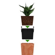 Емкость для растения имеет меньший объем и вставляется в декоративную емкость.