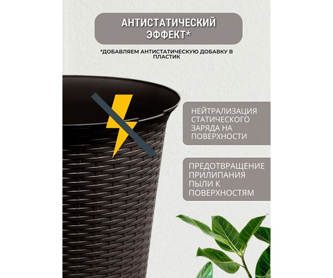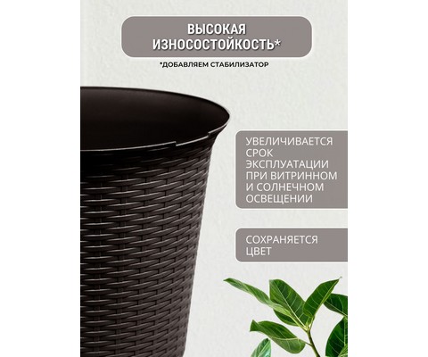 Имитация ротанга придает кашпо природную эстетику, позволяя ему гармонично сочетаться с садовой мебелью и ландшафтным дизайном.