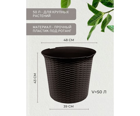 Кашпо садовое под ротанг 50 л СадКо обеспечит стильное и практичное оформление вашего сада, подчеркивая красоту растений.