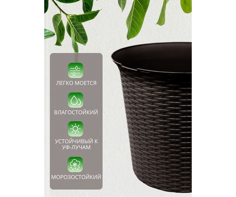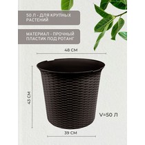 Кашпо садовое под ротанг 50л СадКо (темно-коричневый).