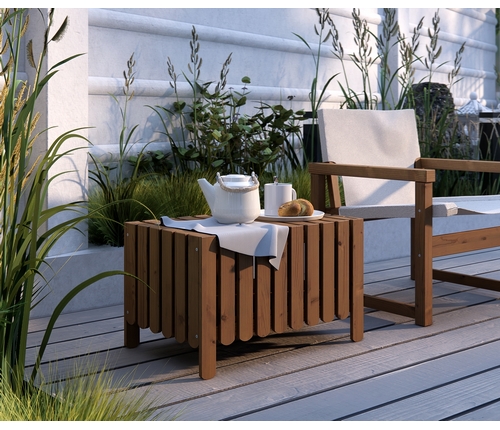 Натуральная древесина придает кашпо-трансформеру теплый и уютный вид, гармонично сочетаясь с другими предметами интерьера и экстерьера.