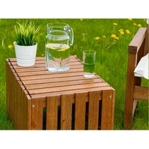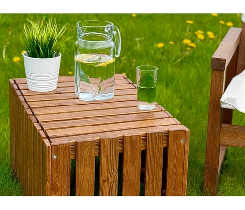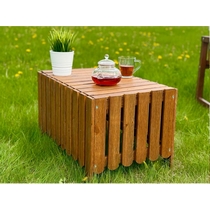 Кашпо-трансформер, изготовленное из массива сосны, может использоваться как кашпо для растений, компактный столик или ящик для хранения.
