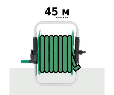Максимальная вместимость - 45 м шланга 1/2" (13 мм), 35 м шланга 3/4" (19 мм), 40 м шланга 5/8“ (16 мм).