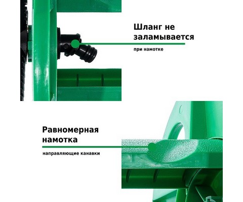 Катушка защищает шланги от перегибов, перекручивания, образования заломов.