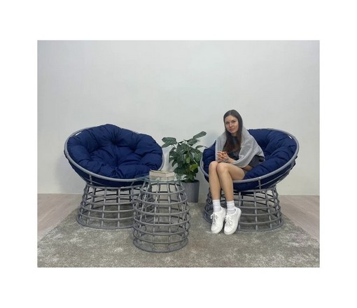 Кофейный комплект из искусственного ротанга FLATA серый/синий