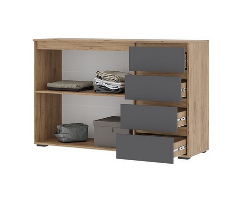 Комод 4 ящика Хелен КМ 06 (серый графит/дуб крафт золото)