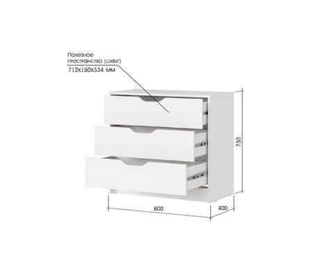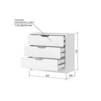 Комод 800 Руна КМ 01 состоит из трех выдвижных ящиков.