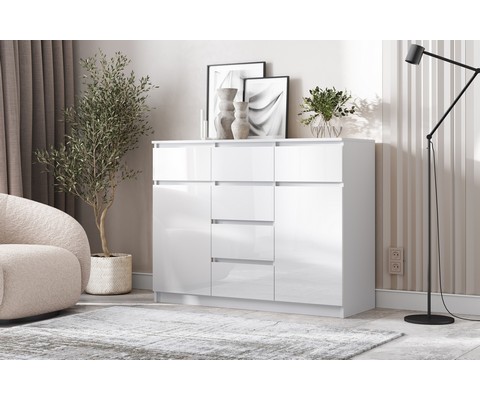 Комод Челси 1200 2 двери 6 ящиков (белый глянец холодный, белый) в современном дизайне. Вместительные ящики и полки позволят организовать место хранения всех необходимых предметов.