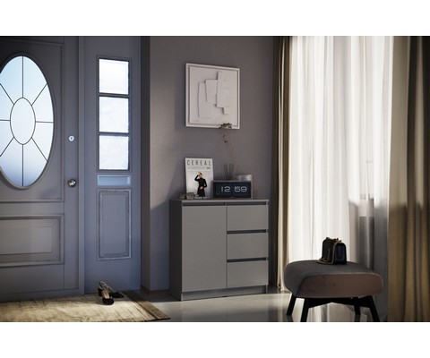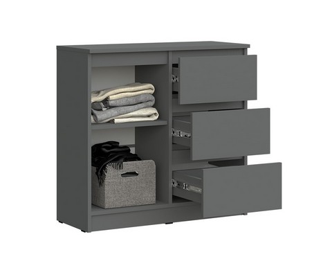 Комод Челси 800 3 ящика 1 дверь (графит) в современном дизайне. Вместительные ящики и полки позволят организовать место хранения всех необходимых предметов.