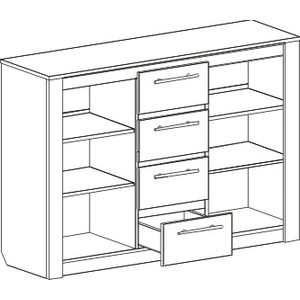 Комод с четырьмя выдвижными ящиками и двумя отделениями.
