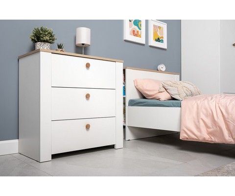 Комод состоит из трех выдвижных ящиков, которые обеспечат эффективную систему хранения.