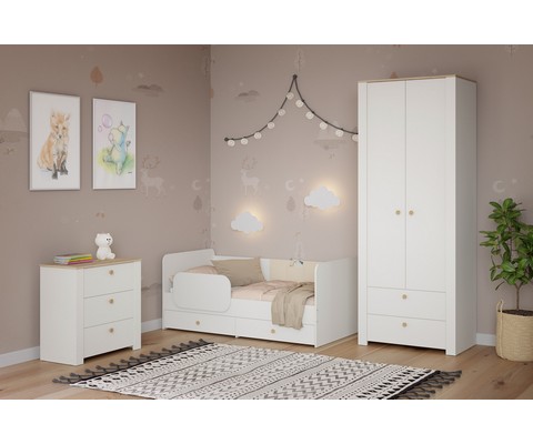 Комод Джастин 16.228.03 с ящиками (белый шагрень, дуб белый)