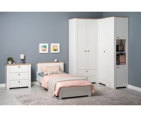 Комод Джастин 16.228.03 с ящиками выполнен в скандинавском стиле и сочетает в себе светлые тона и лаконичный дизайн.