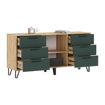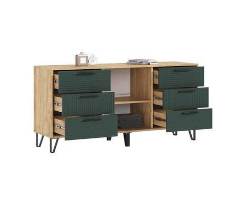 Комод Флэш 1500 (браш мени грин, дуб крафт) выполнен в современном стиле. Вместительные ящики и полки позволят организовать место для хранения всех необходимых предметов.