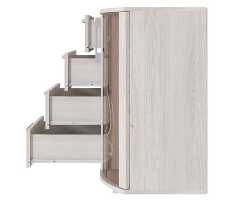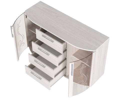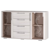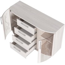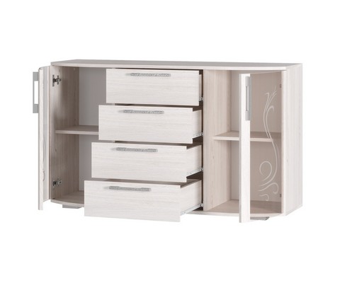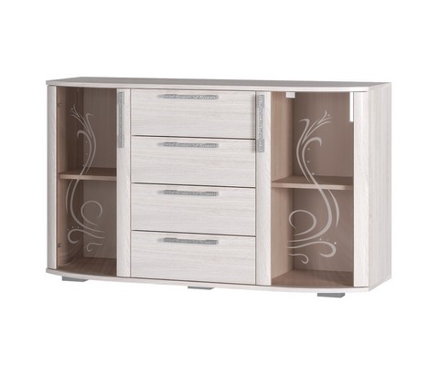 Комод Флорида в декоре ясень украшен изящными узорами и стразами Swarovski на гнутых стеклостворках.