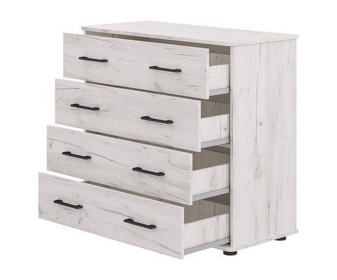Конструкция оборудована четырьмя ящиками полного выдвижения, с использованием шариковых направляющих, края столешницы скруглены для комфортного и безопасного пользования.