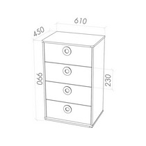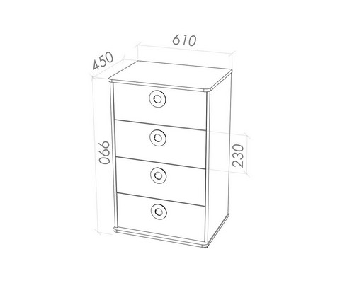 Конструкция оборудована четырьмя ящиками с круглыми ручками.