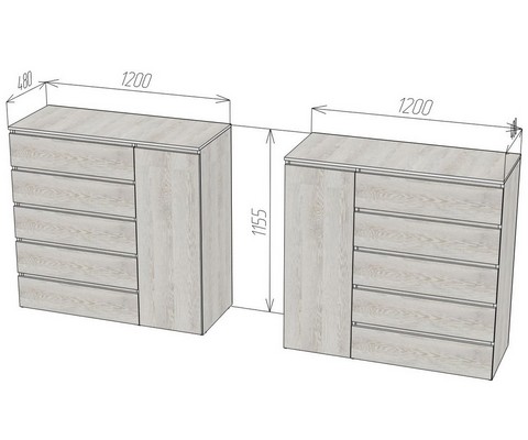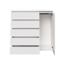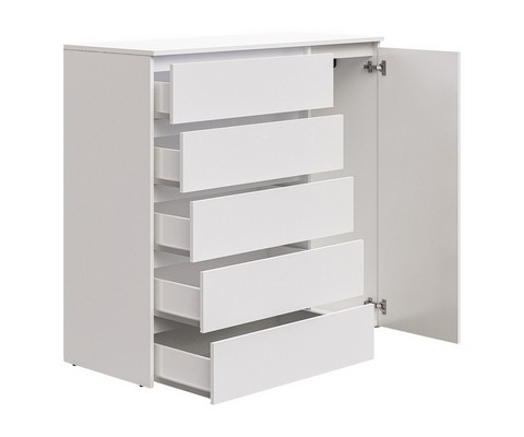 Оснащение конструкции: пять выдвижных ящика бесшумного плавного хода, распашной шкафчик с вешалкой для одежды.