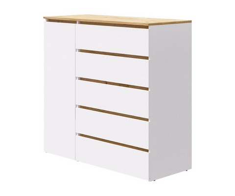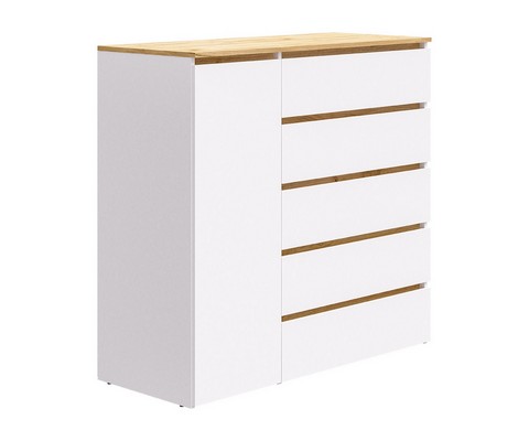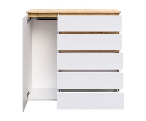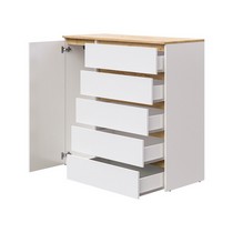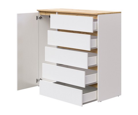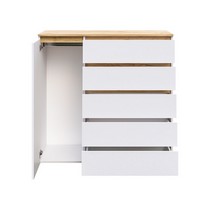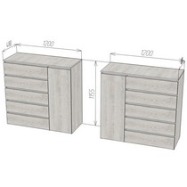 Оснащение конструкции: пять выдвижных ящика бесшумного плавного хода, распашной шкафчик с вешалкой для одежды.