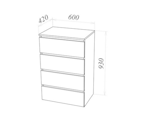 Оснащение: четыре ящика полного выдвижения бесшумного плавного хода.