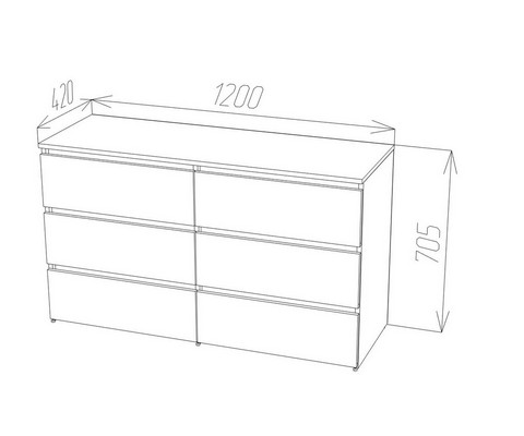 Оснащение конструкции: шесть выдвижных ящика бесшумного плавного хода.