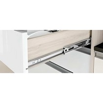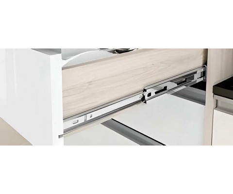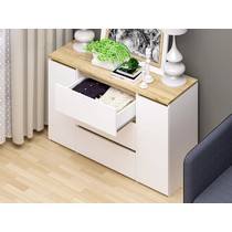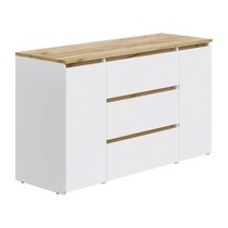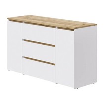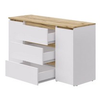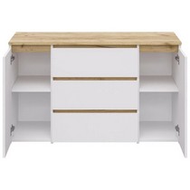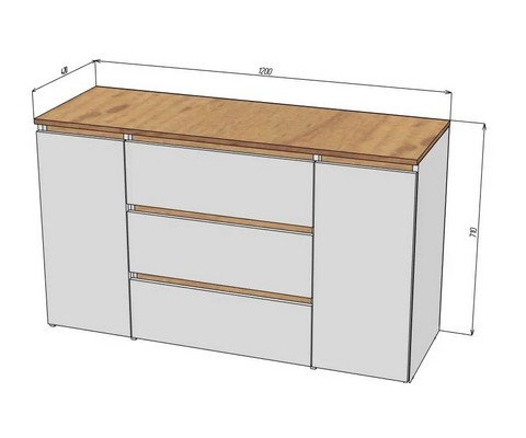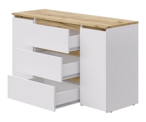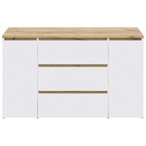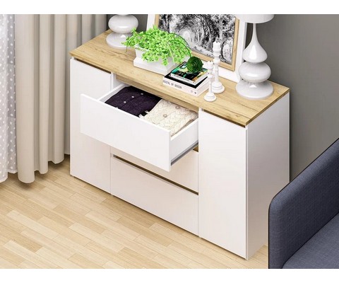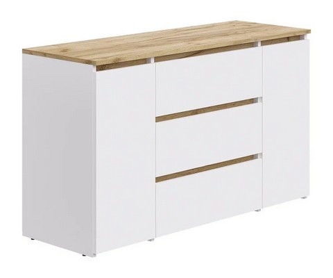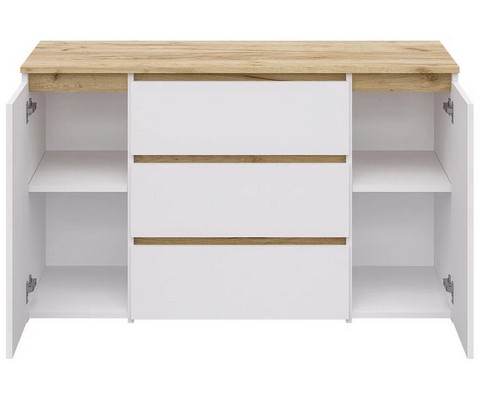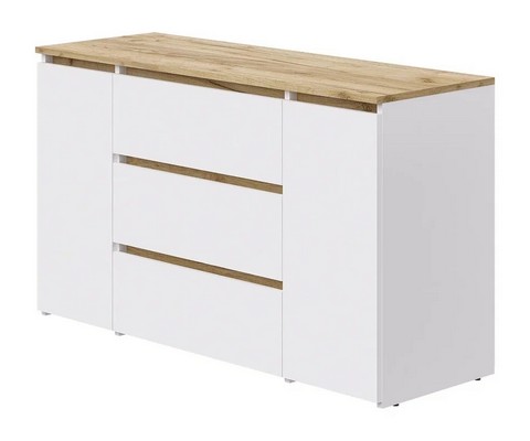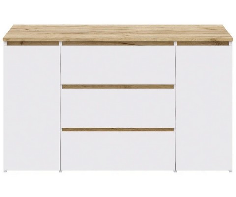 Комод К-32 белый / крафт золотой оснащен 3 выдвижными ящиками и 2 распашными дверцами.