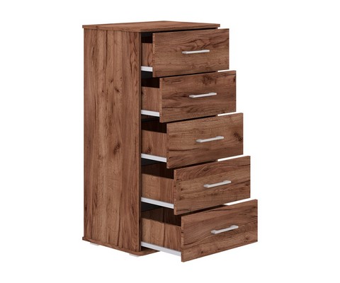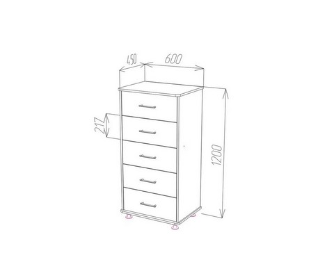 Здесь 5 одинаковых, удобных и вместительных ящиков. Благодаря современным телескопическим (шариковым) направляющим, они имеют полное выдвижение.