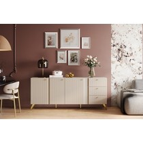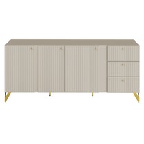 Комод объединяет три выдвижных ящика и три распашные дверцы, за которыми скрывается удобное внутреннее пространство с полками.