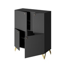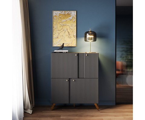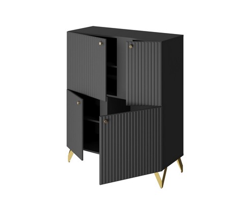 Комод объединяет четыре распашные дверцы, за которыми скрывается удобное внутреннее пространство с полками.