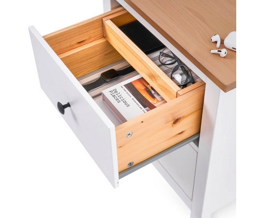 Верхний ящик оснащен съемным деревянным контейнером для удобного хранения мелочей.