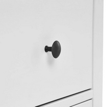 Роликовые направляющие обеспечивают плавное выдвижение ящиков, а металлические ручки служат стильным акцентом.