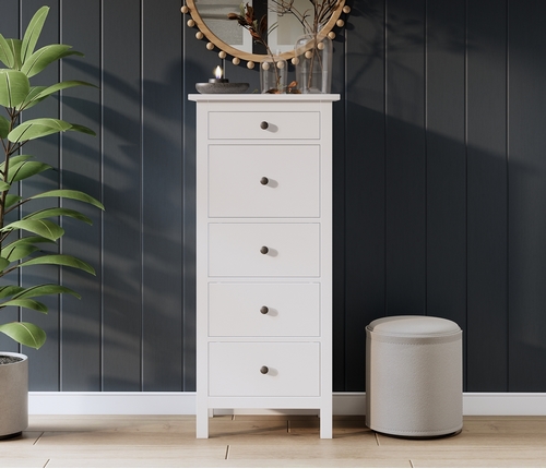 Высокий комод Кымор с пятью ящиками - это практичное и стильное решение для организации хранения одежды, белья и других вещей.