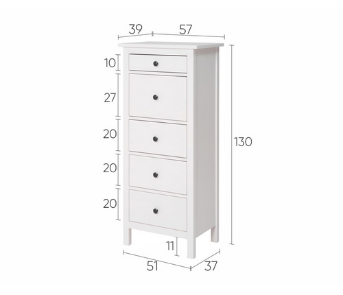 Комод Кымор 5 ящиков 58х131х40 (белый).