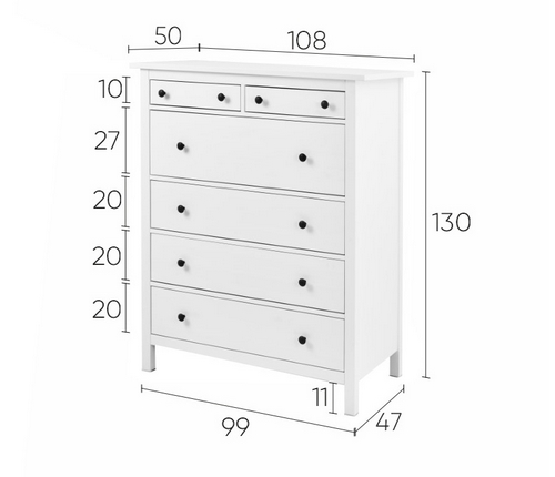 Комод Кымор 6 ящиков 108х131х50 (белый)