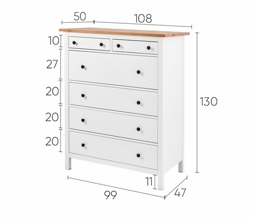 Комод Кымор 6 ящиков 108х131х50 (белый, светло-коричневый)