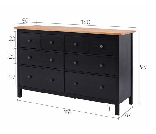 Комод Кымор 8 ящиков 160х96х50 (черный, светло-коричневый)