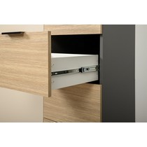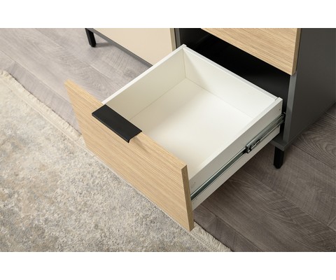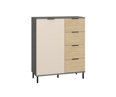 Комод Марвэл 16.234.01 выполнен в стильном сочетании темно-серого корпуса с яркими фасадами в цвете сатин и плэйн.