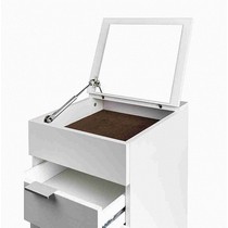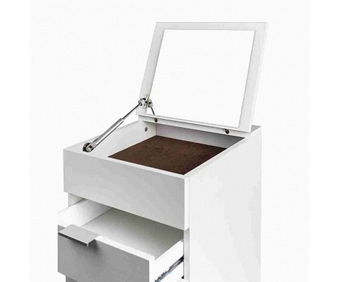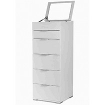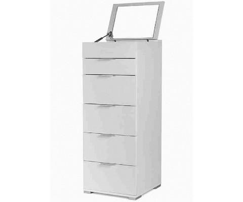 Комод НК 6 оснащен пятью выдвижными ящиками и отсеком с откидной крышкой с амортизатором для фиксации, откидная крышка комода оснащена зеркалом.