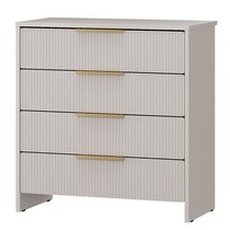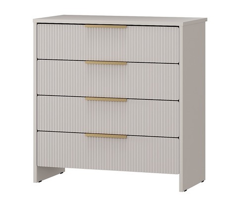 Корпус комода изготовлен из высококачественного ЛДСП, а фасады ящиков с вертикальной фрезеровкой - из МДФ.