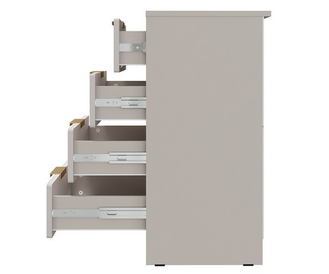 Комод оснащен четырьмя просторными выдвижными ящиками, которые обеспечивают достаточно места для хранения.