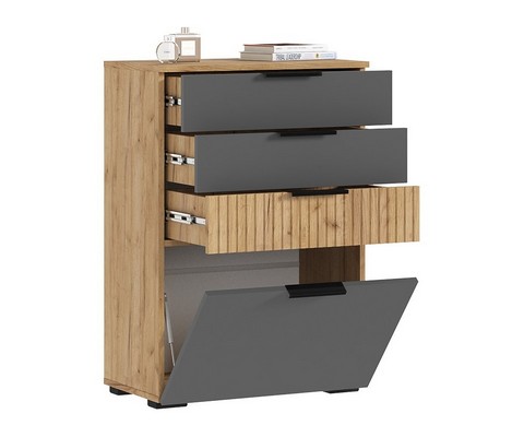 Комод Роджина 600 (графит, дуб крафт) дополнит современный интерьер комнаты. Вместительные ящики позволят организовать место для хранения всех необходимых предметов.