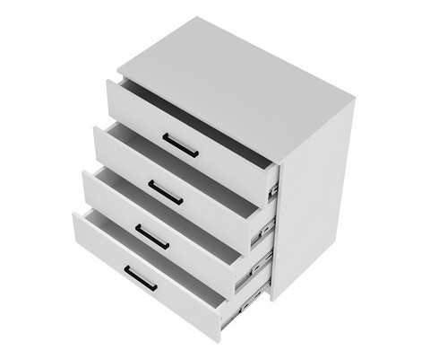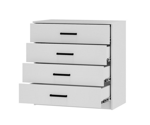 Широкий комод Фьюжн КМ-02 с 4-мя ящиками на направляющих плавного выдвижения поможет организовать хранение вещей в сложенном виде, постельных принадлежностей, аксессуаров.