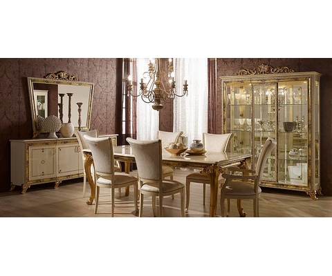 Мебель имеет трехслойное лаковое покрытие, изделия выполнены с применением трехцветной шелкографии. Объёмный декор – мебельный пенополиуретан. Кромка и стяжки - Германия. Петли, ручки - Италия. Боковины изделий – без лака.